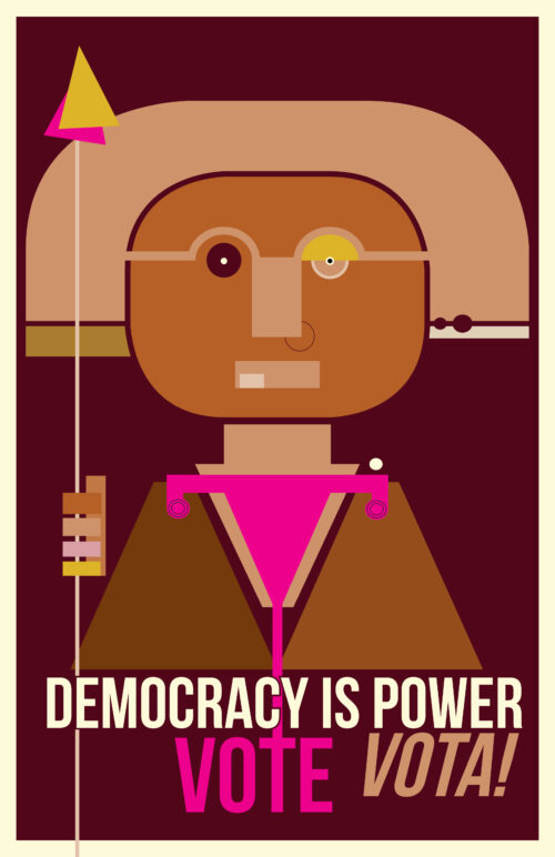 The Power to the Polls campaign is meant to keep the momentum from the Women’s March going all the way to the voting booth. In 2018, during their voter registration tour, the Women’s March organizers partnered up with Amplifier to create artwork encouraging civic engagement. We held an open call for submissions from female and nonbinary-identifying artists in the United States and received over 3,000 entries. Fifty of those pieces, selected by a 12-person committee, are currently being distributed as free art giveaways, ad takeovers, and wheat and paste campaigns nationwide. Our goal is to encourage people to exercise their right to vote and elect representatives who will stand up for them.